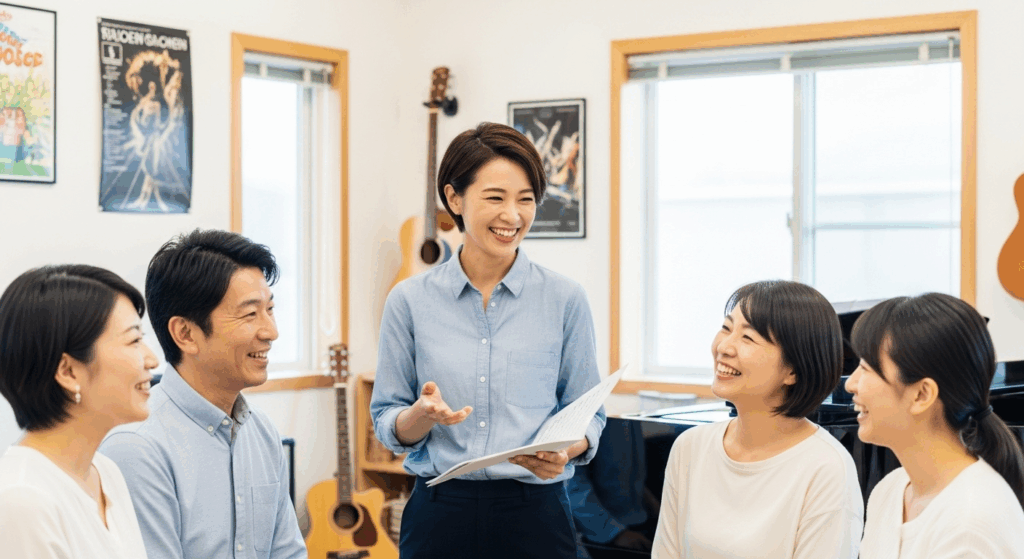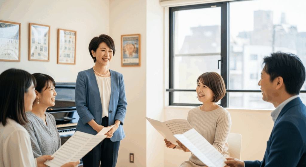 • グループレッスン: 他の生徒と一緒に学ぶことで、アンサンブル能力が養われ、費用も比較的安価です。合唱などを楽しみたい方に適しています。